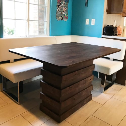The kitchen and dining room tables you locate at big box retailers or furniture stores in the raleigh, north carolina area might not be exactly what you are looking for. Frequently asked questions about raleigh custom furniture makers. The most common custom kitchen table material is linen. They demonstrate that your family is close because you eat together. Antiquated parchment on antiquated brown maple. Upholstery for custom metal chairs. Curved trestle custom farmhouse table. So how do we do it? Jake's custom amish crafted dining tables come in your choice of; My own family rediscovered board games just around a year before we opened and i love sharing the experience with others. Heavner is the perfect place in the raleigh area to shop for tables. Cocktail & coffee tables conference tables console tables dining sets dining tables kitchen islands & butcherblocks all tables. The unique architectural design of our rand table in recycled natural steel gives the illusion of a floating top.